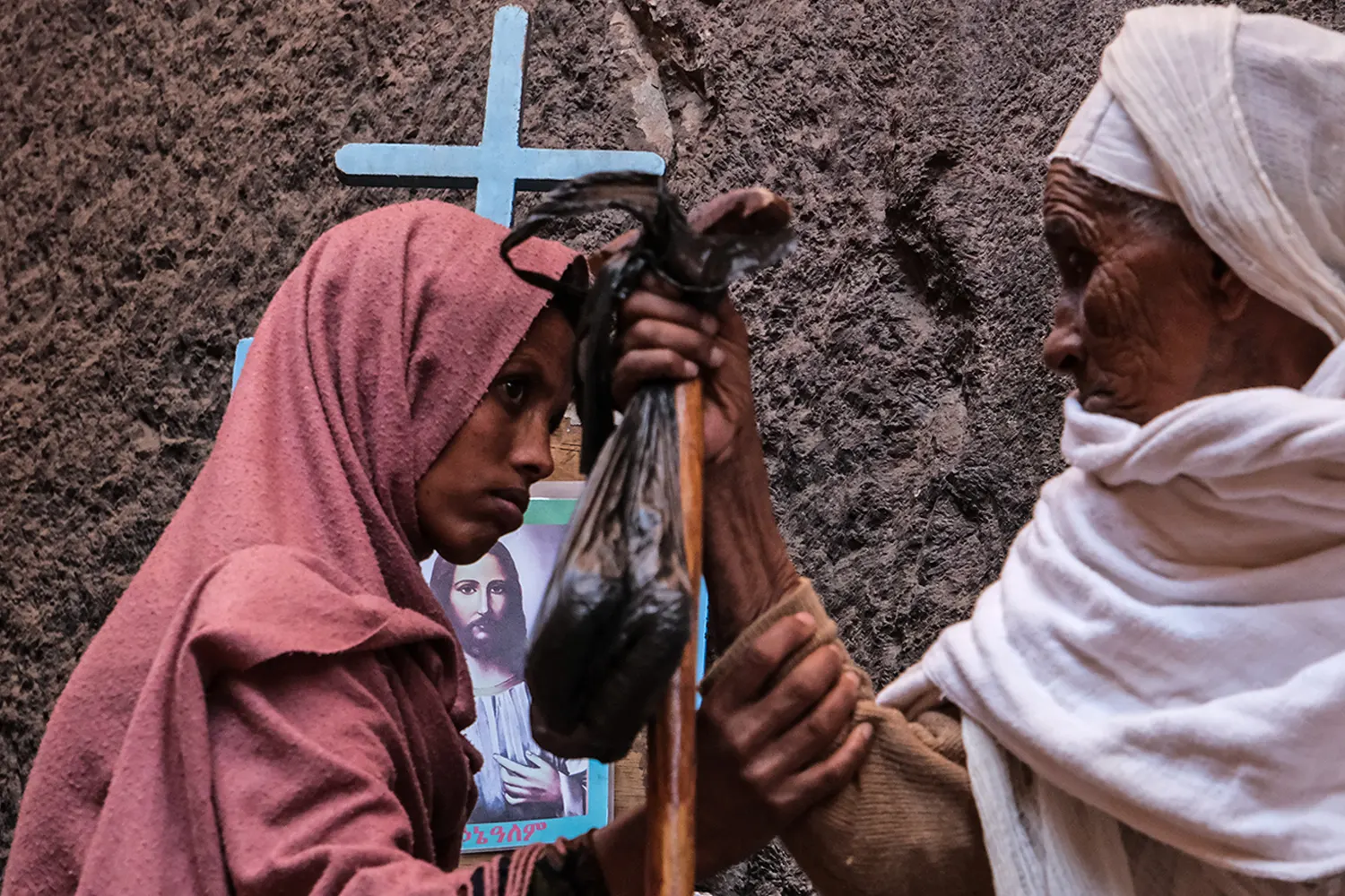 Το αποκορύφωμα έρχεται τη νύχτα του Μεγάλου Σαββάτου, όταν οι ιερείς ψάλλουν ύμνους στα Ge’ez, την αρχαία γλώσσα της Αιθιοπικής Εκκλησίας, και η Lalibela φωτίζεται από χιλιάδες κεριά — ένα θέαμα που συνδυάζει πίστη, παράδοση και πολιτισμό με τρόπο μοναδικό στον κόσμο.